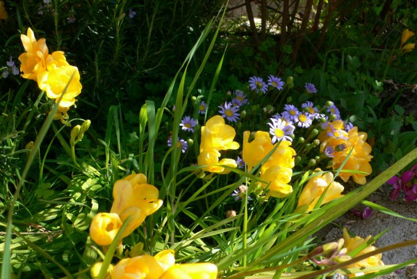 Le printemps, l'été à Nice et chez nous les frésias, les roses, les capucines, les pivoines